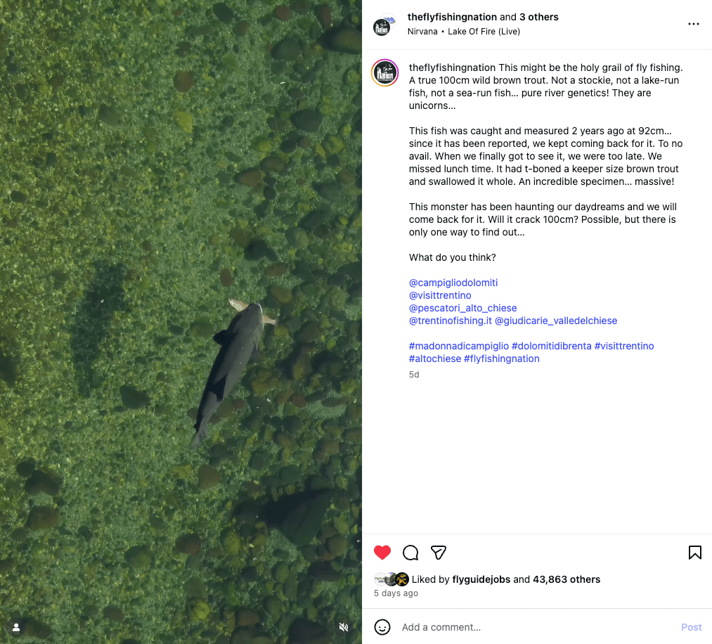 This drone footage from @theflyfishingnation shows the fish cruising after it swallowed a keeper-size brown whole.