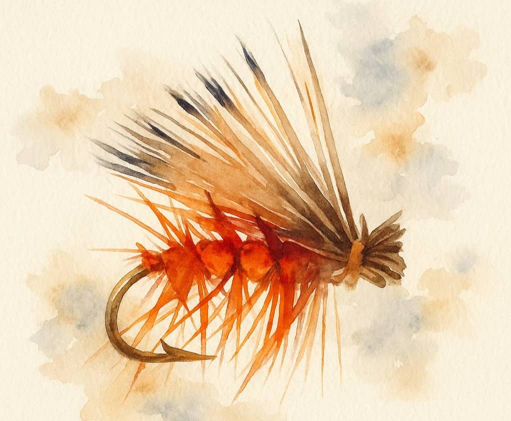 October Caddis (Dry, Size 8–12) When fall settles in, October Caddis are often on the menu for trout. These big orange caddisflies are most active in the evenings, fluttering across riffles and soft seams.